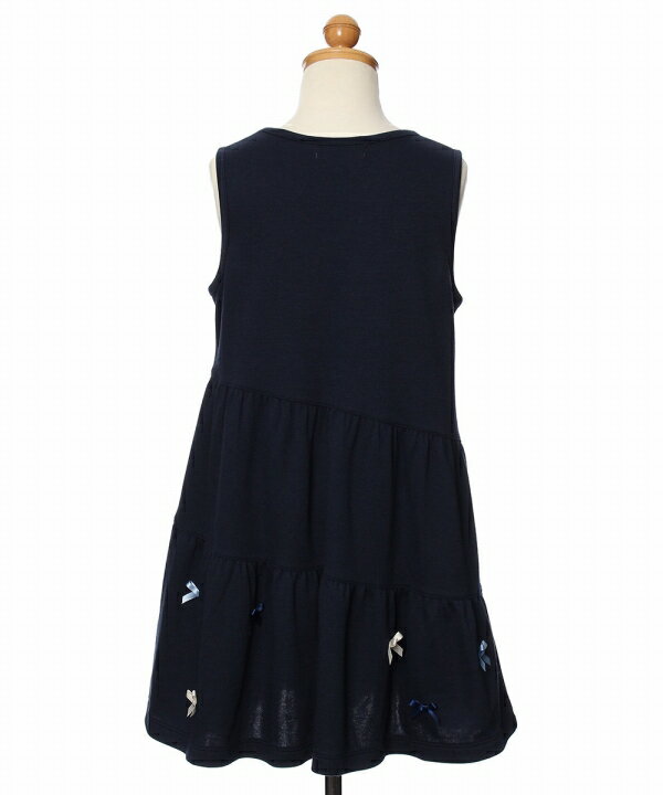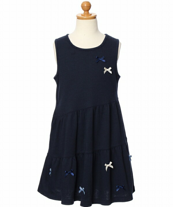 子供服 女の子 ワンピース・ジャンパースカート ノースリーブ フォーマル 入学式 卒園式 発表会 結婚式 普段着 通学着 リボン付き斜めギャザー切り替えAライン ネイビー ブルー 100cm 110cm 120cm 130cm 140cm 150cm 160cm 【むーのんのん MOONONNON】