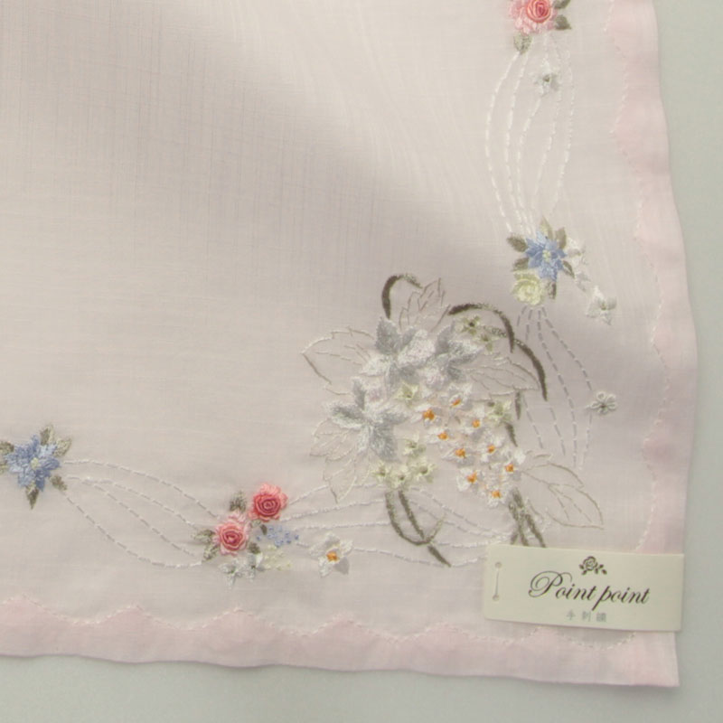 【送料無料】ポワンポワン ベトナム手刺繍 ハンカチ 5212 ピンク【楽ギフ_包装】