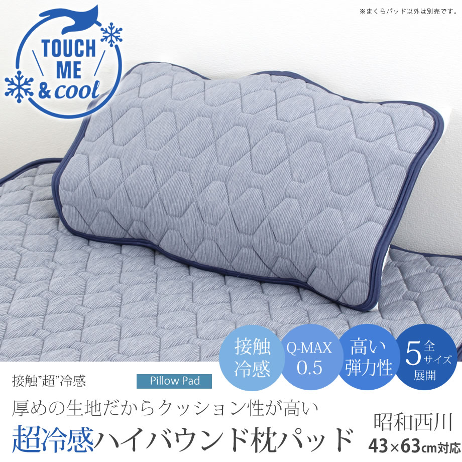 【6/10はポイント5倍】超冷感ハイバウンド枕パッド 枕パッド Q-MAX 0.5 ピローパッド 冷たい 接触冷感 ひんやりマット 43×63cm 超冷感 極冷感 昭和西川 Q-max0.5以上!冷感 クール EX-COOL 2240386799305