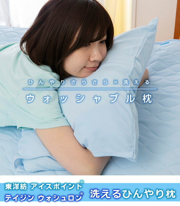 ひんやり 洗える 枕 冷感 まくら 43×63cm東洋紡 アイスポイント ICEPOINT 接触冷感 速乾 生地×テイジン ウォシュロン中綿使用 枕 日本製【ニット 枕 カバー 夏用 洗える まくら 丸洗いOK 寝具】